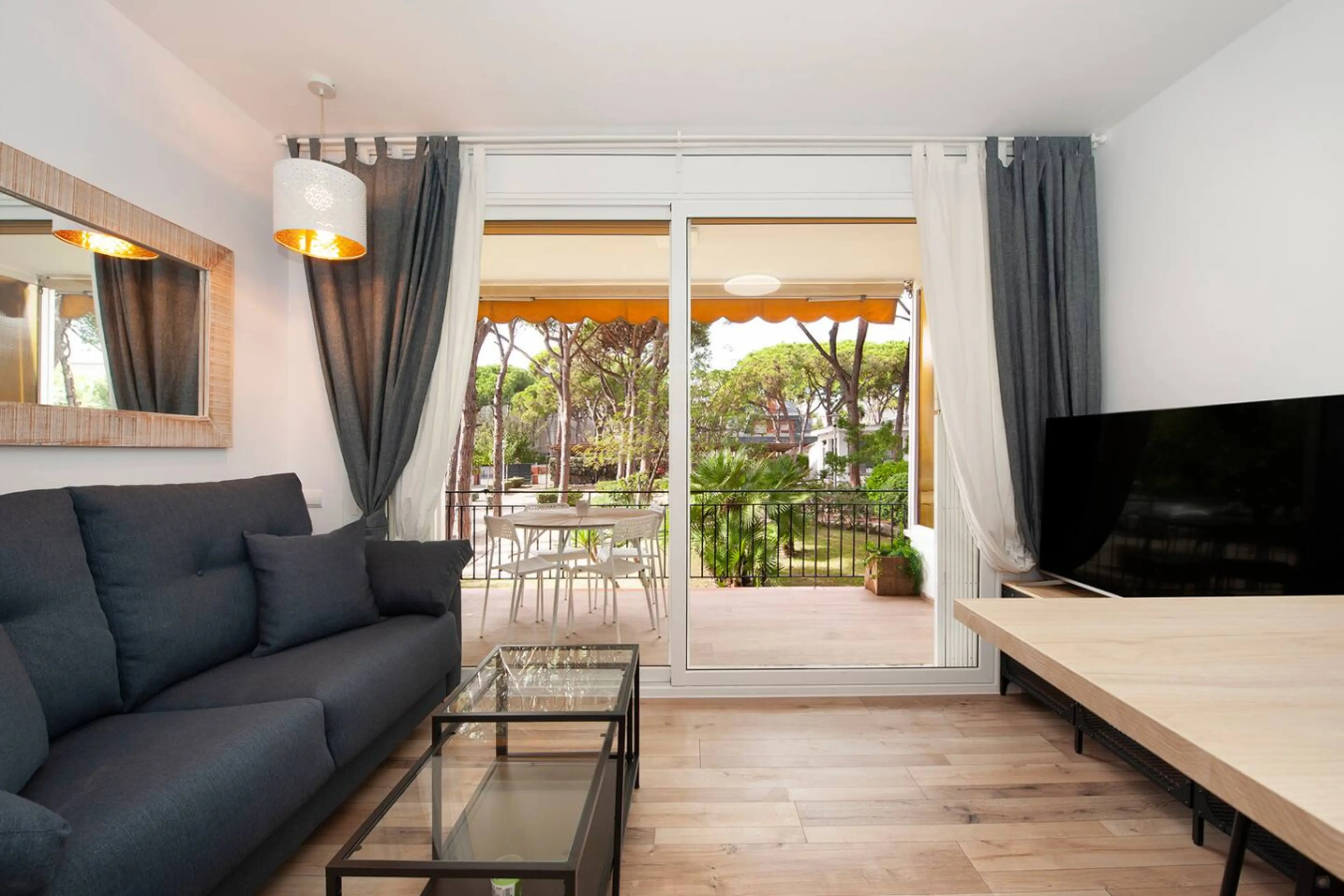 Apartamento recién reformado y amueblado en la playa de Castelldefels a 2 minutos a pie del mar. Consta de un dormitorio con cama doble, otro con litera, baño con ducha y lavadora, cocina totalmente equipada (nevera, microondas, menaje, ollas, sartenes, cafetera), salón moderno y terraza con relajan...